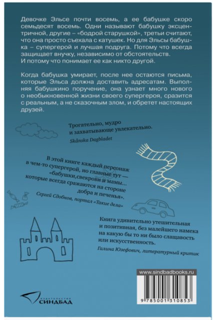 Девочке Эльсе почти восемь, а ее бабушке скоро семьдесят восемь. Одни называют бабушку эксцентричной, другие - "бодрой старушкой", третьи считают, что она просто съехала с катушек. Но для Эльсы бабушка - супергерой и самая лучшая подруга. Потому что всегда защищает внучку, независимо от обстоятельств. И потому что понимает ее как никто другой.