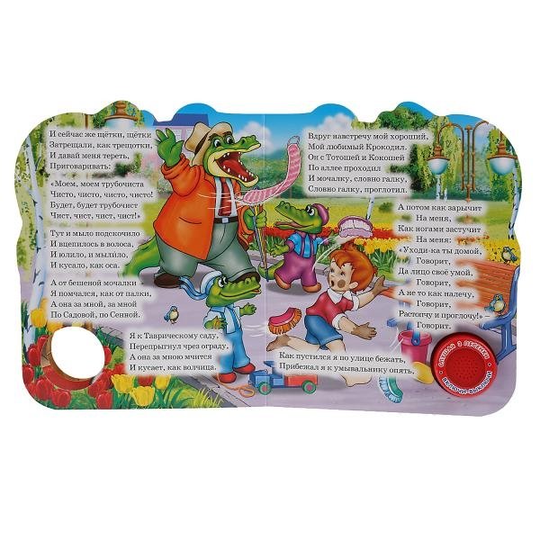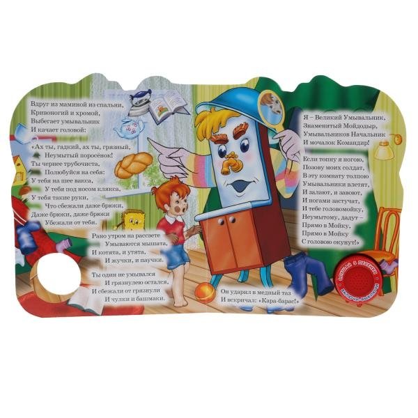 Компактная книга из прочного безопасного картона с кнопкой для прослушивания. Любимые авторы, народные фольклор, истории по мультфильма, и конечно, 3 песенки!