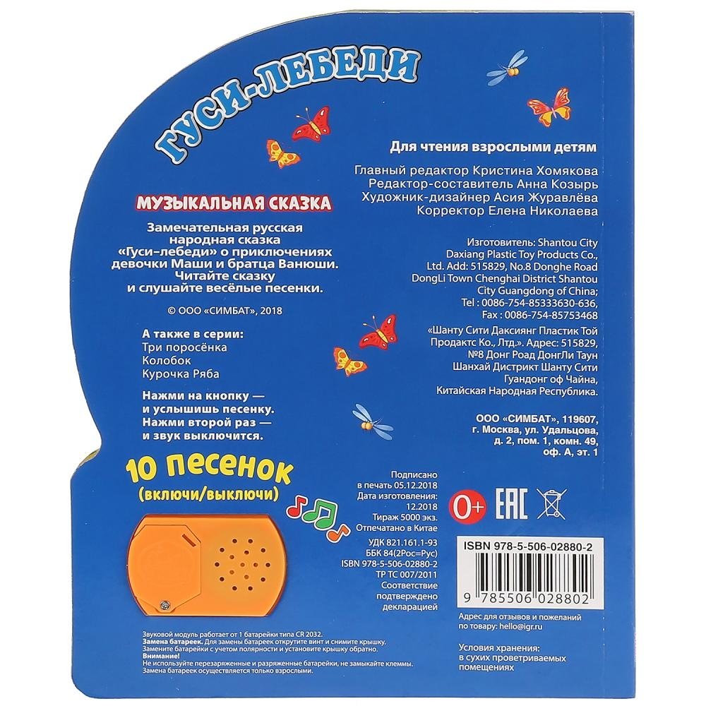 Компактная книга из прочного безопасного картона с кнопкой для прослушивания. Любимые авторы, народные фольклор, истории по мультфильма, и конечно, 10 песен!