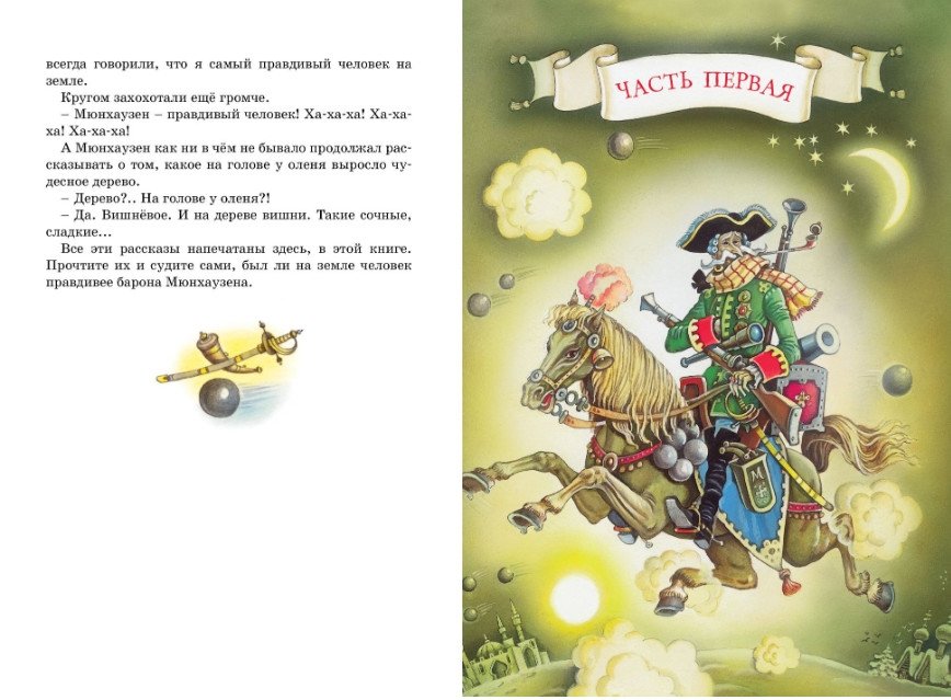 Барона Мюнхаузена знают во всём мире – он прославился рассказами о своих необыкновенных приключениях. Согласитесь, вряд ли кому ещё удастся поджечь порох искрами из глаз или забраться по стеблю боба на Луну! А кто не помнит его историй о полёте на ядре или о дереве на рогах оленя, которое выросло из вишнёвой косточки?! Несмотря на всю их неправдоподобность, мы тем не менее в них верим. Как верил в них сам барон Мюнхаузен, «самый правдивый человек на земле»!