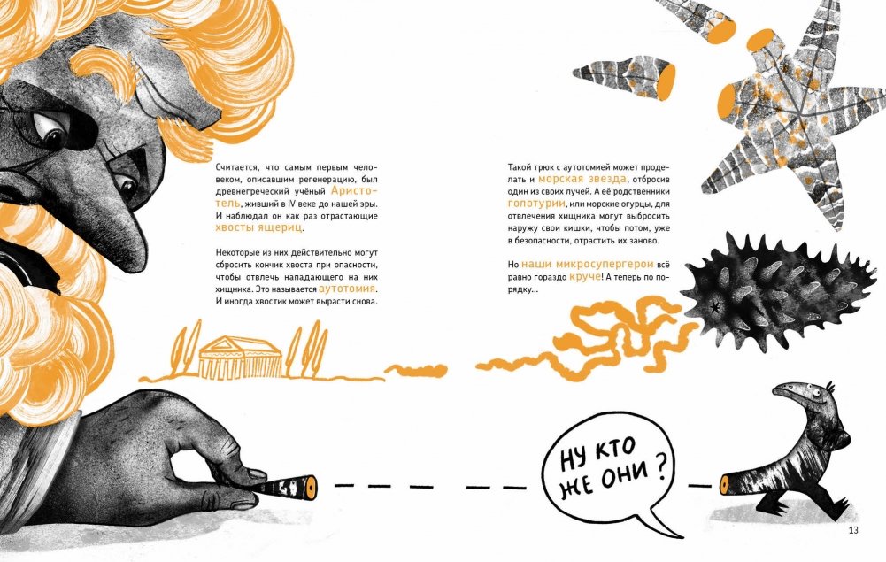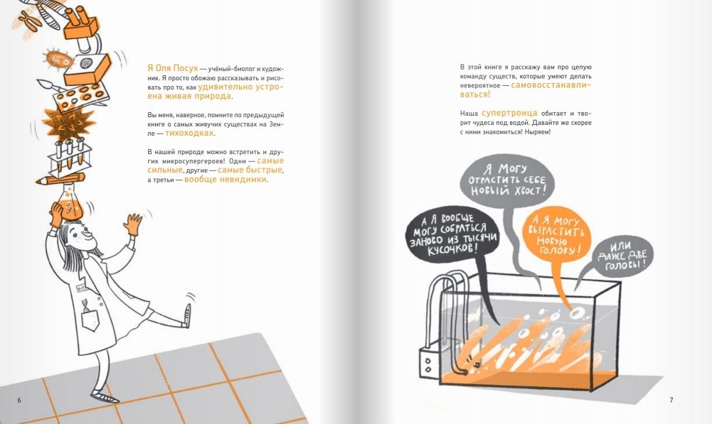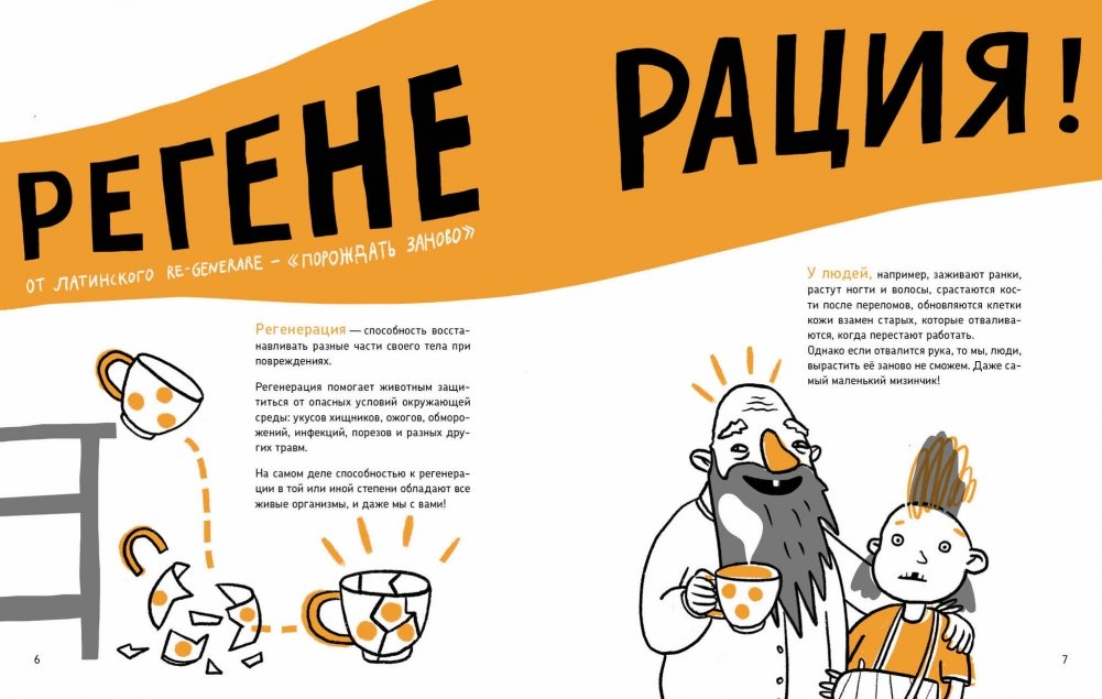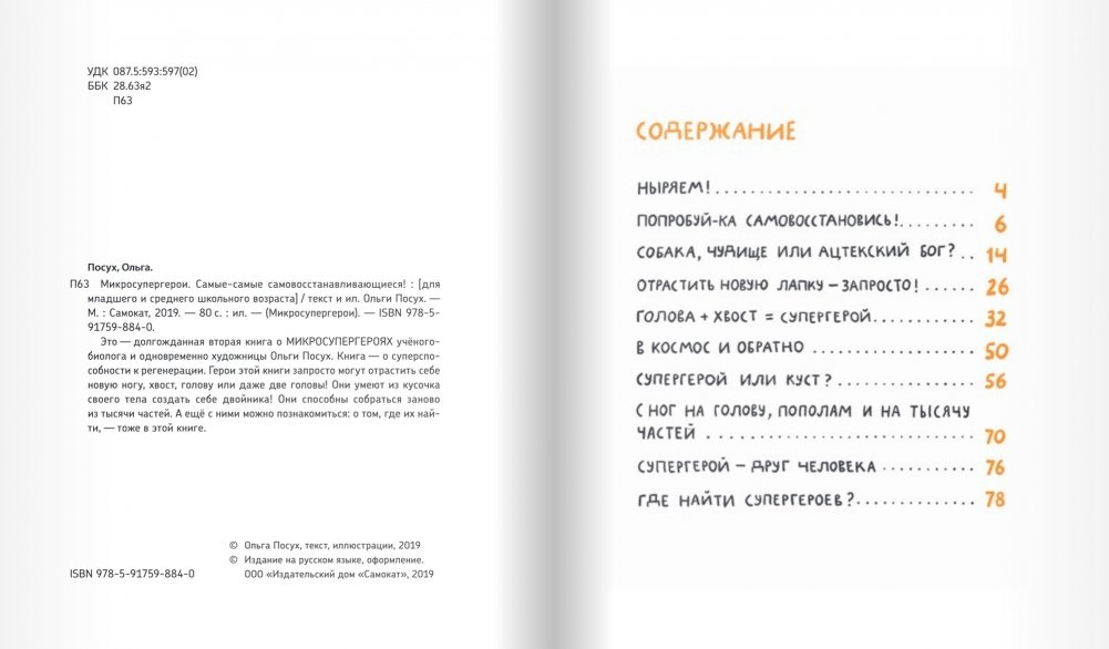 Это - долгожданная вторая книга о микросупергероях учёного биолога и одновременно художницы Ольги Посух. Книга - о суперспособности к регенерации. Герои этой книги запросто могут отрастить себе новую ногу, хвост, голову или даже две головы! Они умеют из кусочка своего тела создать себе двойника! Они способны собраться заново из тысячи частей. А ещё с ними можно познакомиться: о том, где их найти, - тоже в этой книге.