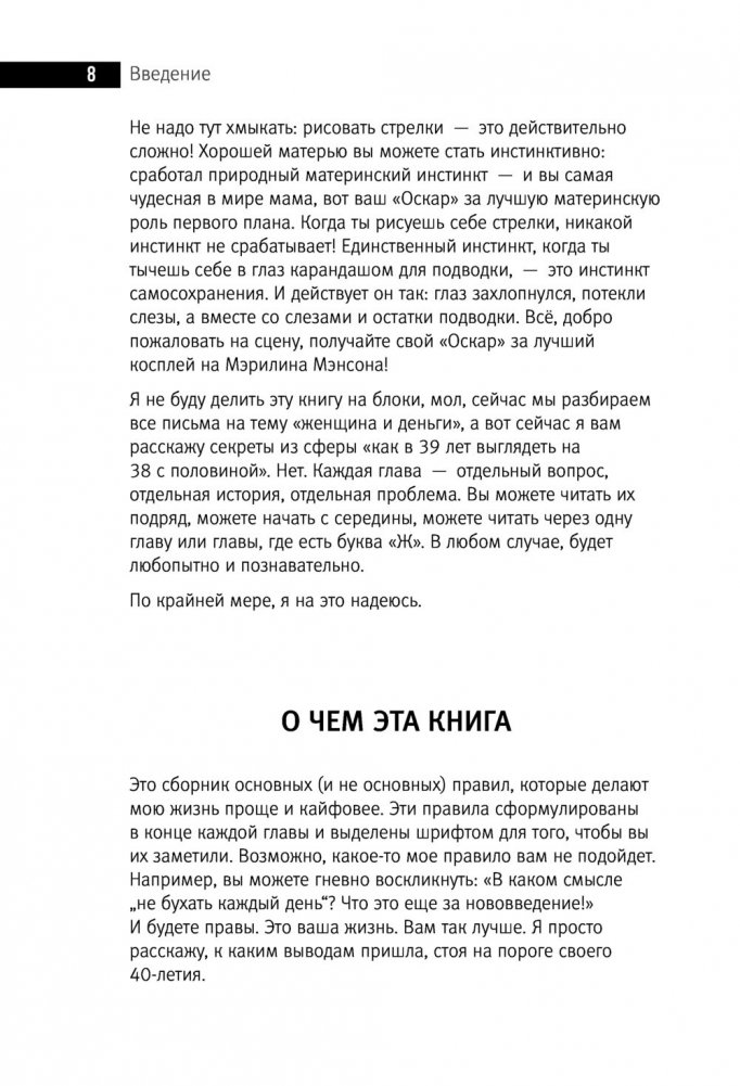 Эта книга — о ВАС. О девочках, девушках, женщинах, бабушках (и даже о мужчинах!), которые мне пишут ежедневно, на чьи вопросы я отвечаю в личных сообщениях. Здесь собраны все наши женские и общечеловеческие страхи: страх остаться одной, страх старости, страх смерти, страх так и не стать хорошей матерью, страх так никогда и не научиться рисовать ровные стрелки.
