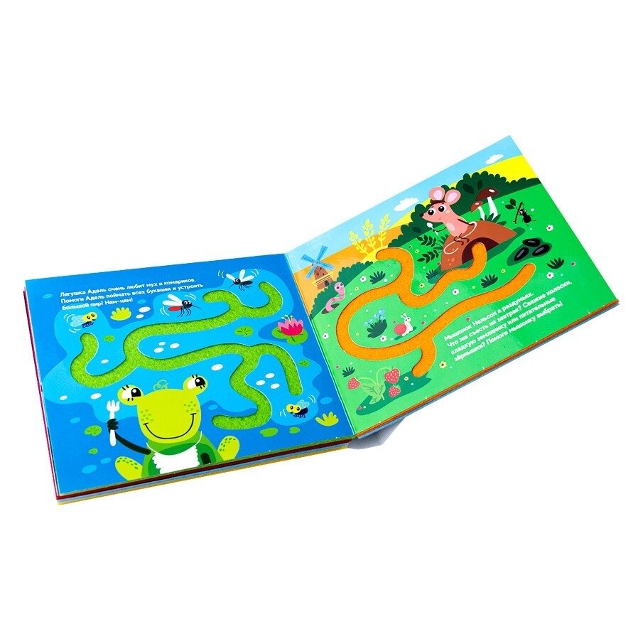 Тактильная книжка из фетра с яркими трогательными лабиринтами для познающих мир малышей "Что сегодня на обед?". Это целый сборник из 10 разных лабиринтов, которые можно потрогать. Фетровые лабиринты представляют собой комплексный веселый тренажер для ребенка. Смотрите сами. Тактильные элементы разной формы развивают мелкую моторику и сенсорику, воздействуют на кончики пальчиков малыша, учат различать разные текстуры и способствуют развитию речи.