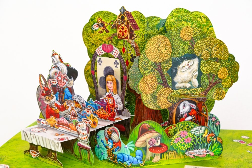 Когда Льюис Кэрролл в 1865 году писал сказку про Алису в Стране Чудес, он и не предполагал, что и в 21 веке эту сказку будут читать дети. Он и не догадывался, что однажды художник Максим Митрофанов и дизайнер 3D конструкций Оксана Иванова сделают для Алисы Страну Чудес настоящей, осязаемой. Алиса с любопытством будет путешествовать по книге с объемными картинками, встречаясь с Белым Кроликом, Чуширским Котом, Герцогиней и другими сказочными существами.
