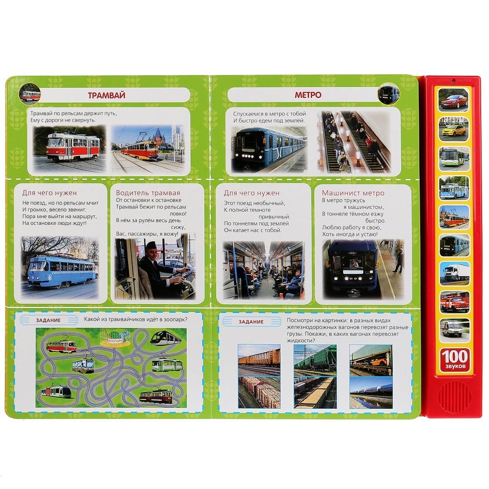 Узнайте всё о машинах, нажимайте на звуковые кнопочки и слушайте звуки транспорта! Такое увлекательное и весёлое чтение приведёт ребёнка в восторг.