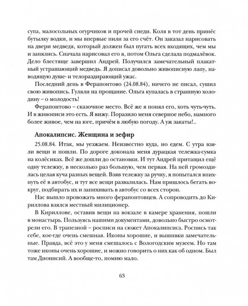 Андрей Филиппов – петербургский художник, с момента основания входивший в небезызвестную группу «Митьки». Путевые и дневниковые записки, вошедшие в книгу, создавались им на протяжении многих десятилетий (1984–2013 гг.) как бы на полях главной работы – живописи и графики, в дополнение к ней. В них отражены и романтика юности, и самоирония кризисов, и проницательный взгляд «художника жизни». Здесь и богемная столичная жизнь, и российская глубинка, и центровая и провинциальная Европа. Всегда личностный предвзятый взгляд на ближних, себя и окружающих.