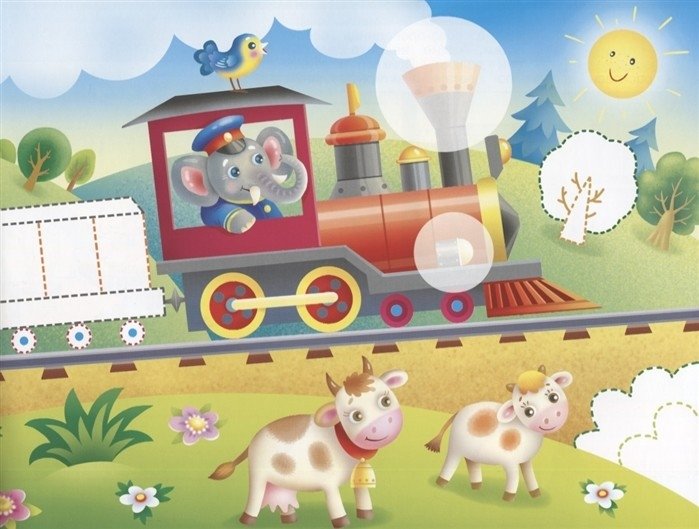 Наклейки "Паровозик". Наклей, обведи, раскрась