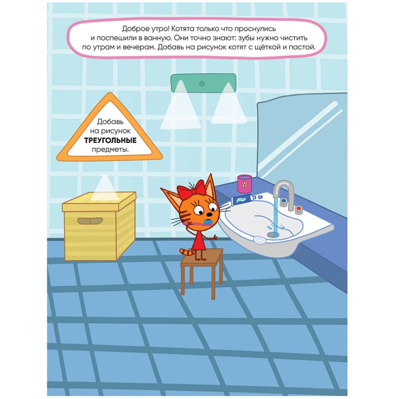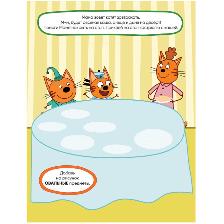 Благодаря удобному формату заниматься по книге «Наш день» из серии «Три кота. Развивающие наклейки» можно где угодно: дома, в поездке, гостях и на прогулке.