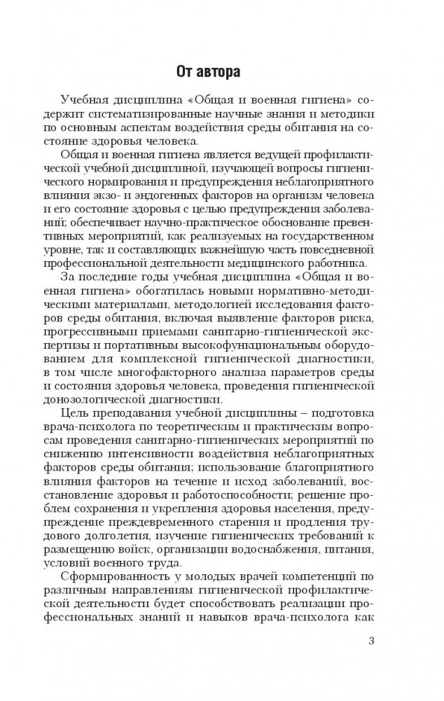 Описаны важнейшие темы общей и военной гигиены, наиболее значимые нормативные документы, знание которых необходимо для успешного усвоения предмета.