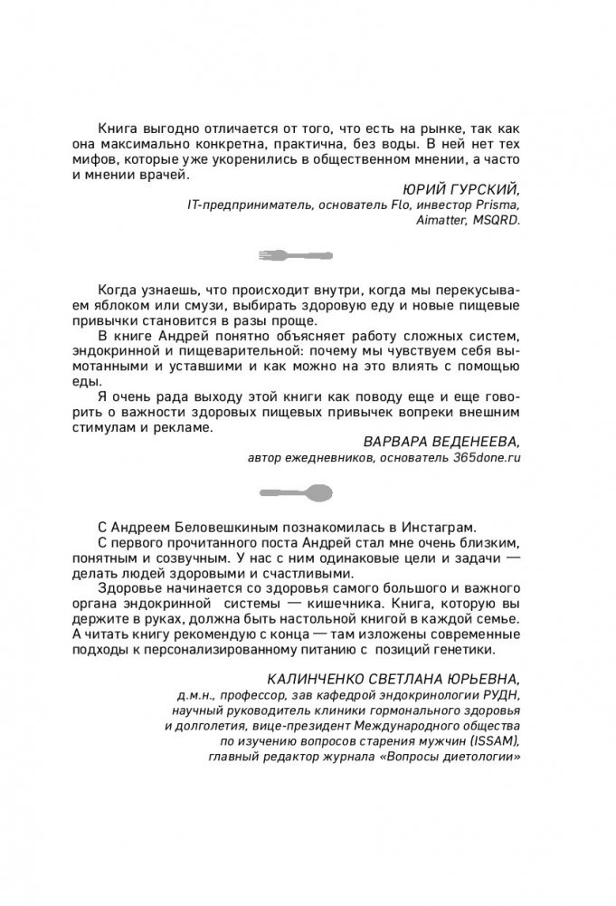 Книга «Что и когда есть» Андрея Беловешкина, врача, к.м.н., преподавателя, — это свод гибких правил, каждое из которых можно применять отдельно. Правила режима питания, выбора продуктов, а также психологии питания дают ответы на самые важные вопросы — когда есть? что есть? и как есть?