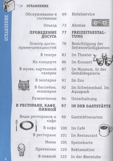 Немецкий разговорник содержит самые необходимые темы и наиболее типичные модели фраз и выражений. Немецкий текст снабжен практической транскрипцией, передающей звуки немецкого языка средствами русской графики. Каждый раздел обозначен своим цветом – вы легко и быстро найдете нужную информацию.