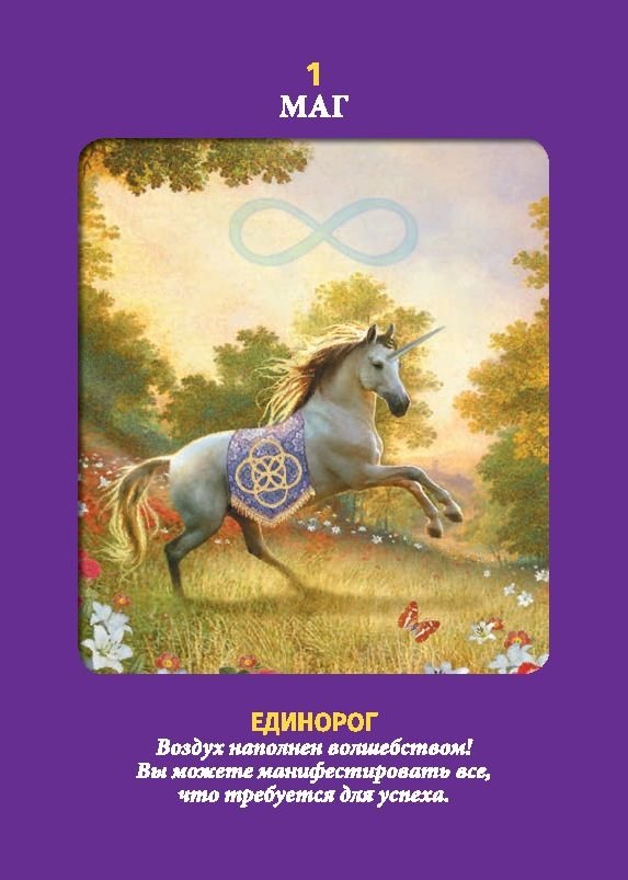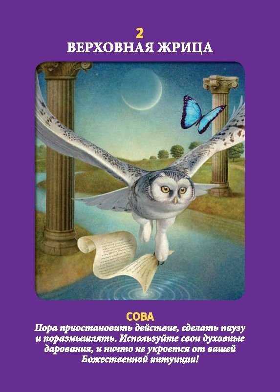 Дорин Вирче и Рэдли Валентайн (первая — веган, а второй — вегетарианец, оба страстные любители, защитники прав и спасатели животных) создали этот набор карт, чтобы вы получали чудесные послания от божьих созданий, больших и малых — от белого медведя до мышки и от пуделя до сенбернара. Каждая карта украшена великолепным изображением домашнего или дикого животного и содержит символическое значение. Прилагаемая брошюра с инструкцией объясняет, как читать и толковать смысл каждой карты
