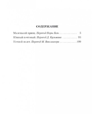 В настоящее издание, помимо «Маленького принца», вошли также две повести Экзюпери о жизни военного летчика: «Южный почтовый» и «Ночной полет».