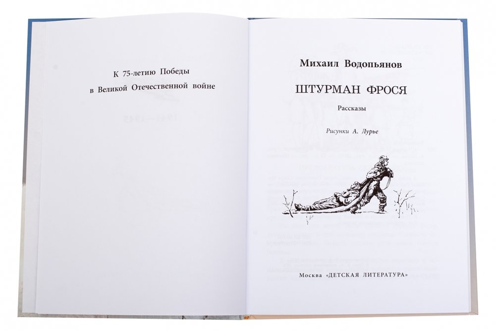 В книгу прославленного летчика, Героя Советского Союза Михаила Васильевича Водопьянова (1899—1980) вошли рассказы, написанные на документальном материале. О том, что происходило с автором и его боевыми товарищами, с детьми и взрослыми, повстречавшимися ему в годы Великой Отечественной войны, рассказывается в сборнике «Штурман Фрося». К 75-летию Победы в Великой Отечественной войне. Для среднего школьного возраста.