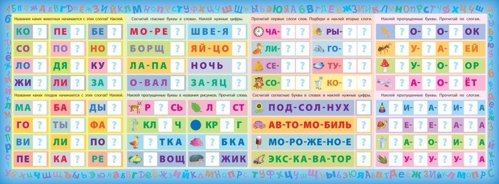 Эта книга-панорамка содержит увлекательные задания, выполнить которые ребенку помогут яркие наклейки. Занимаясь по этой книжке, дошкольник легко научится складывать буквы в слоги, а слоги - в слова, и потренируется в самостоятельном чтении. В книге 150 многоразовых наклеек, благодаря которым можно возвращаться к выученному материалу и повторять его, а ответы для самопроверки помогут узнать ребенку, правильно ли выполнено задание.