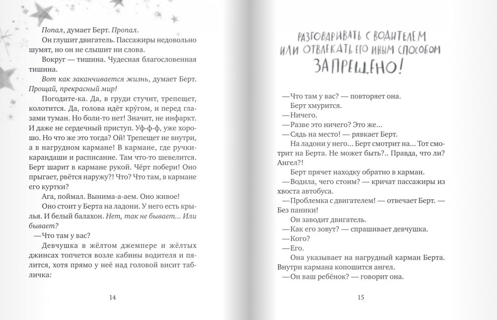 У ворчуна Берта Брауна и его жены Бетти завёлся маленький ангел, Ангелино. Их друзья — и дети, и взрослые — радуются милому созданию: какой он хорошенький! Он учится говорить! И летать! А вот и недруги Ангелино: одни умные и знают, что ангелам среди людей не место; другие — ушлые и мечтают продать ангела по выгодной цене. Они уже поймали Ангелино и посадили на цепь! Неужели так всё и закончится? Может, да. А может, и нет. Все книги Дэвида Алмонда — лауреата премии Андерсена — полны волшебства, мудрости и переосмысления представлений о добре и зле, норме и не-норме. И эта тоже! Она уже переведена на 14 языков.