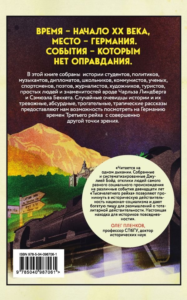 Эта книга рассказывает о жизни в Германии в период между двумя войнами. Основанная на документальных свидетельствах иностранцев, она передает и эмоциональное, и физическое состояние путешественников, побывавших в Третьем рейхе. Десятки ранее неопубликованных дневников и писем помогают создать новую яркую картину жизни в нацистской Германии.