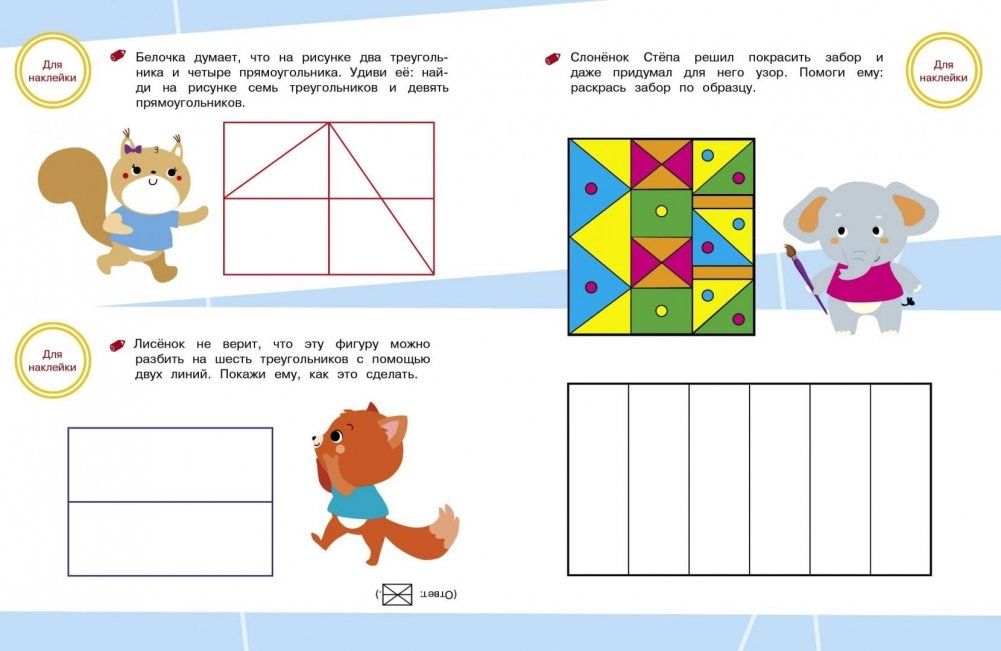 В каждом пособии есть поощрительные наклейки. Они помогут вам оценить выполненные ребёнком задания и мотивировать вашего маленького ученика для дальнейших занятий по книге.