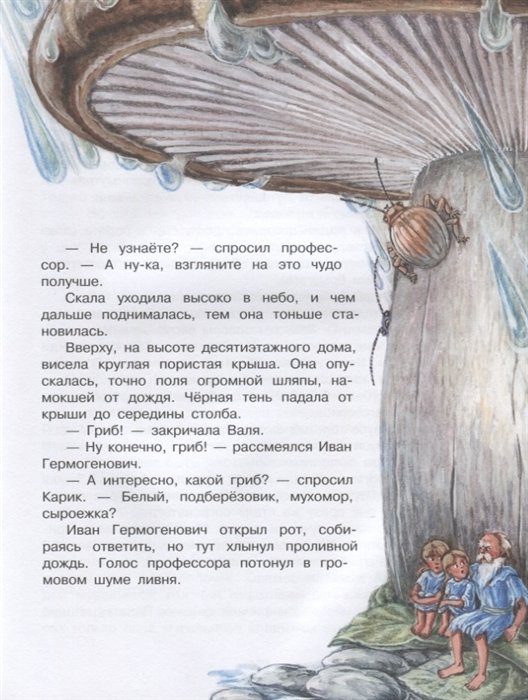 Брат и сестра, Карик и Валя, выпили эликсир, изобретённый профессором Енотовым, и уменьшились во много раз, до размеров горошины. Обнаружив пропажу ребят, профессор обо всём догадывается и отправляется на поиски, предварительно уменьшив и себя. На их пути встречается много опасностей: травяной лес, насекомые, размером с пятиэтажный дом, жала… Путь домой окажется не только страшным, но и интересным.