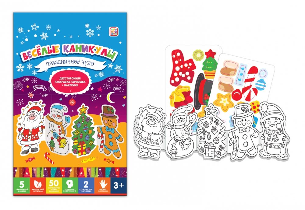 Двусторонняя раскраска понравится любому ребенку. Она сделана в виде гармошки. Раскрашивая героев и наклеивая наклейки, можно оживить их. Рисование позволит развить творческие способности ребенка, его фантазию и усидчивость.