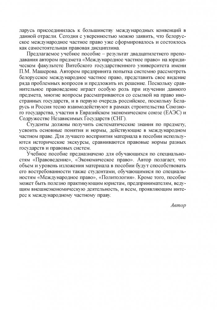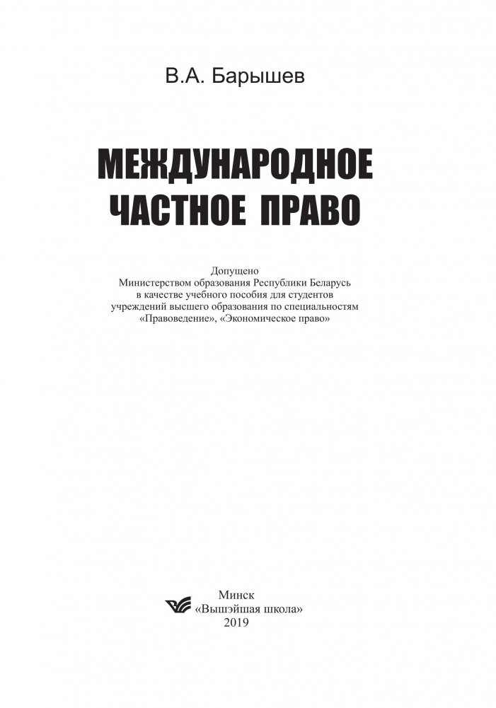 Для студентов дневной и заочной форм обучения по специальностям «Правоведение», «Экономическое право», слушателей курсов переподготовки, магистрантов, аспирантов и практических работников, занимающихся вопросами международного частного права.