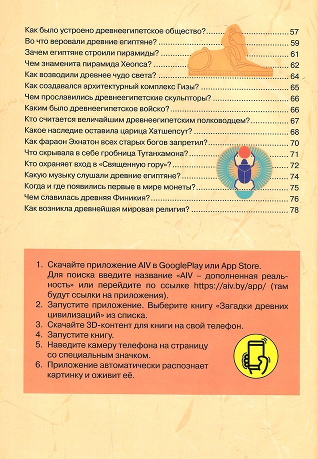 Серия "Живая история". Уникальное издание с оживающими и объемными цветными иллюстрациями открывает первую в Беларуси серию детских познавательных книг с дополненной реальностью (AR) в формате видео и интерактивных 3D-игр - "Живая история". При помощи планшета или смартфона и нашего бесплатного приложения Aiv_дополненная реальность, доступного в в App Store и Google Play Market , юный читатель совершит виртуальное путешествие по улочкам древнего шумерского города, увидит Вавилон и Висячие сады Семирамиды, посетит пирамиды Гизы, узнает много нового и интересного о древнейших восточных цивилизациях. Книга дает понятные и емкие ответы на важнейшие вопросы всемирной истории. Предназначено для детей среднего и старшего школьного возраста, а также для их родителей и всех читателей, интересующихся историей Древнего мира.