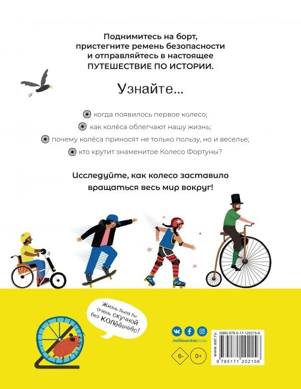 Узнай, как обычное колесо заставило крутиться весь мир! Приготовься к захватывающему путешествию по разным эпохам: от Древнего Рима с его быстроходными колесницами до современного мира, где автомобилям уже не нужен водитель. Прокатись на американских горках и и разберись в механизме гигантских грузовиков. Иллюстратор Фатти Берк окончила Национальный колледж искусства и дизайна в Ирландии. Она обладатель многочисленных наград, например, Irish Book Award 2015 и CBI Book of the Year Award 2016. "Колесо. Машины, шестерёнки, карусели и всё, что вращается и крутится" - это увлекательная история в комиксах о самом древнем изобретении человечества.
