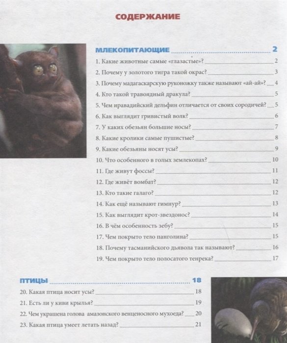 На нашей планете обитает огромное количество животных, многие из которых поражают своими размерами, формами, повадками и способностями. Эта книга предлагает вам познакомиться с самыми удивительными представителями млекопитающих, птиц, земноводных, рептилий и насекомых.