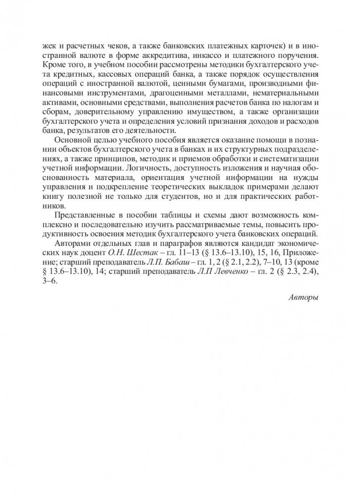 Рассматриваются принципы и задачи бухгалтерского учета в банках; организация учетно-операционной работы; порядок ведения основных регистров аналитического и синтетического учета; режим функционирования счетов клиентов, порядок их ведения, переоформления и закрытия; методики бухгалтерского учета и документального оформления безналичных межбанковских регистров, кредитных, кассовых и трастовых операций банка, а также операций с иностранной валютой, ценными бумагами.