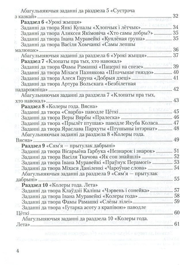 Вучэбны прадмет "Літаратурнае чытанне" ў 2-м класе змяшчае 10 раздзелаў чытання. Вучэбныя заданні складзены да чатырох твораў кожнага раздзела. Акрамя таго, прапануюцца яшчэ вучэбныя заданні абагульняючага характару да кожнага з 10 раздзелаў у двух варыянтах. Заданні прадстаўлены ў выглядзе картак для індывідуальнай, групавой і калектыўнай работы.