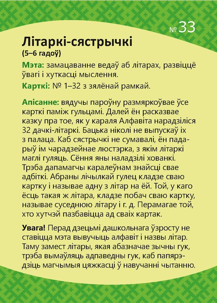 Выданне прызначана для сумеснай працы дарослага і дзіцяці дашкольнага ўзросту. Тэксты заданняў прызначаны для чытання дарослымі дзецям.