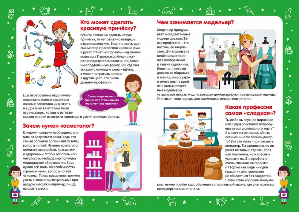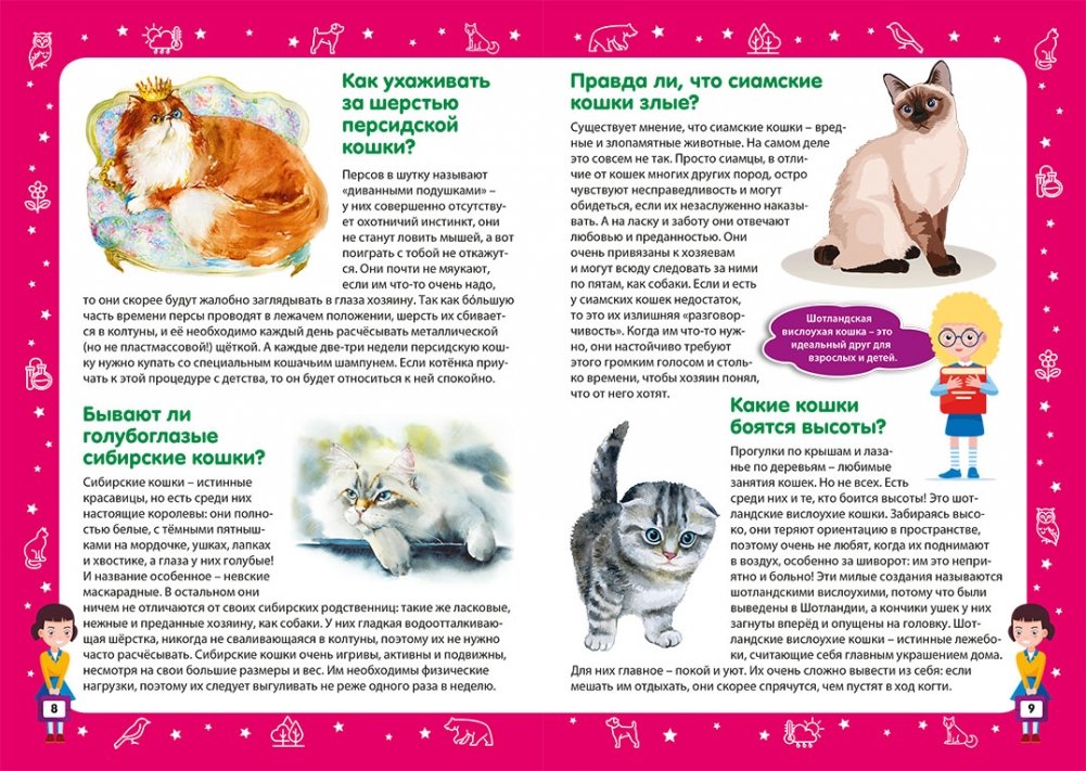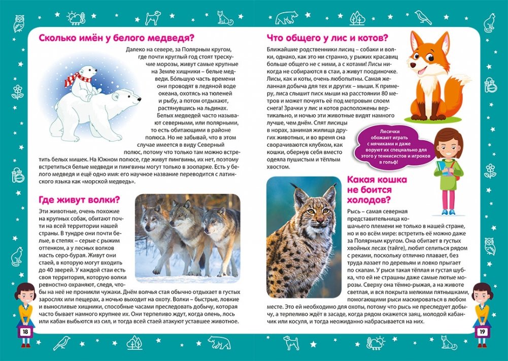 Эта красочная энциклопедия – прекрасный подарок для любой девочки. Она наверняка любит домашних питомцев, например котёнка или попугая, интересуется окружающим животным и растительным миром, и ещё не знает, кем хочет стать в будущем… Специально для неё мы сделали книгу с яркими картинками и интересными разделами: