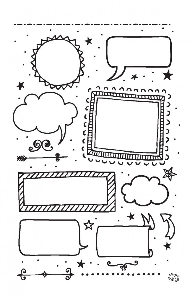 За шаблонами следует более 100 страниц с удобной линовкой в точку, которая трансформируется и в линейку, и в клетку. Используйте для заполнения пустых страниц готовые шаблоны или придумайте свой дизайн для их оформления.