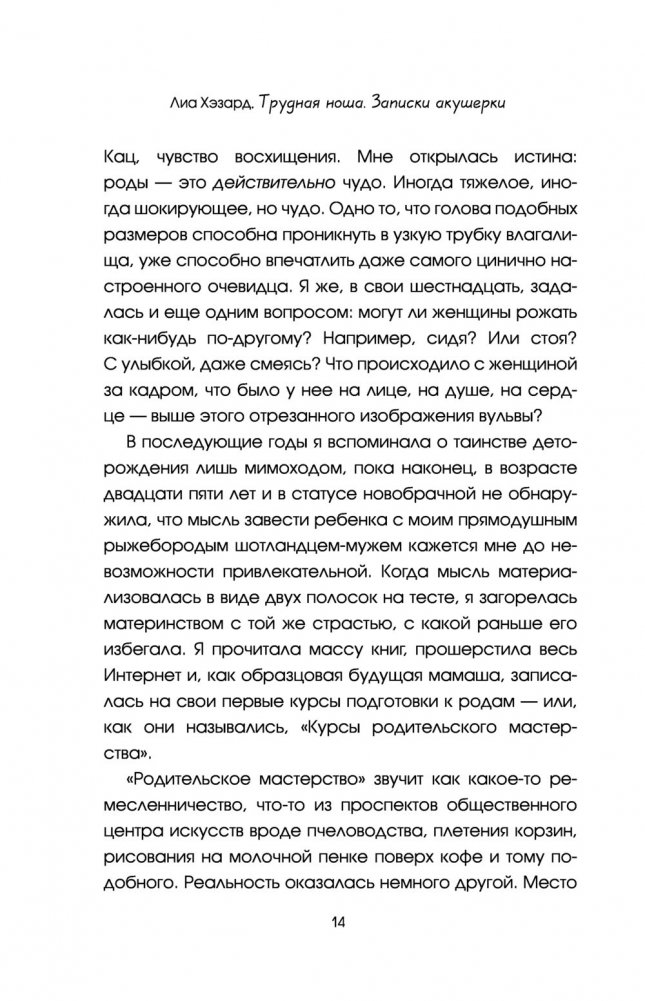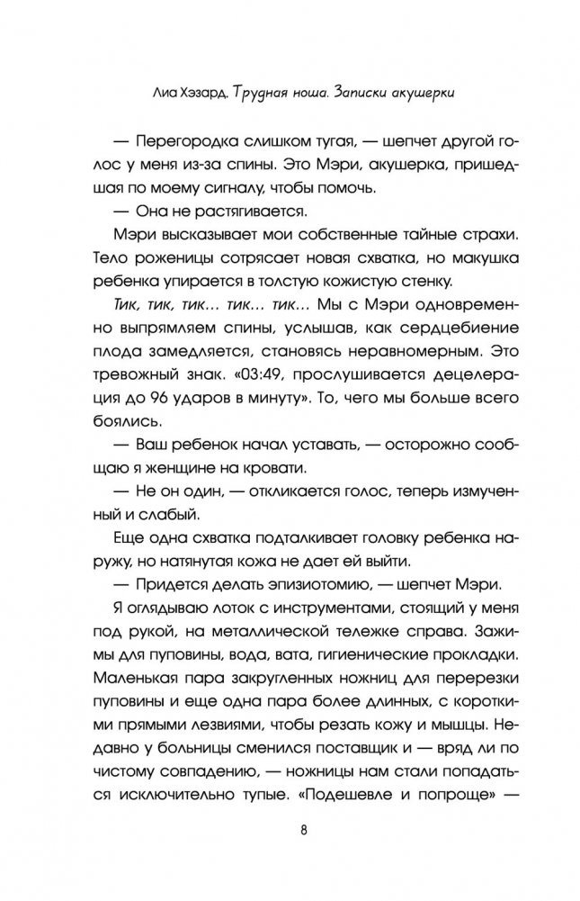 Поначалу наивно полагая, что будет вместе со своими пациентками восторгаться рождению новой жизни, ухаживать за веселыми и довольными будущими мамочками, а потом нянчиться с их круглощекими младенцами, она быстро поняла, что на самом деле работа акушерки весьма далека от этой идиллической картины. Роды проходят по-разному. Неотложные ситуации возникают постоянно. В родильных отделениях не хватает персонала, акушерки вечно перерабатывают и не высыпаются, на них лежит огромная ответственность, и многие не выдерживают. Однако автор не из таких. Она приходит на помощь в самых тяжелых ситуациях. Старается сделать все, что в ее силах. Искренне сопереживает своим пациенткам, отчего зачастую страдает сама, но до сих пор ей не удалось обрасти панцирем равнодушия, который на ее работе очень бы пригодился.