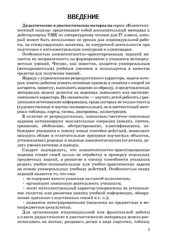 Дидактические и диагностические материалы серии «Компетентностный подход» представляют собой дополнительный материал к действующему УМК по литературному чтению для 4 класса, который может быть использован на уроках для индивидуальной работы, на стимулирующих занятиях, во внеурочной деятельности при подготовке к интеллектуальным конкурсам и олимпиадам.Адресуется учителям начальных классов.