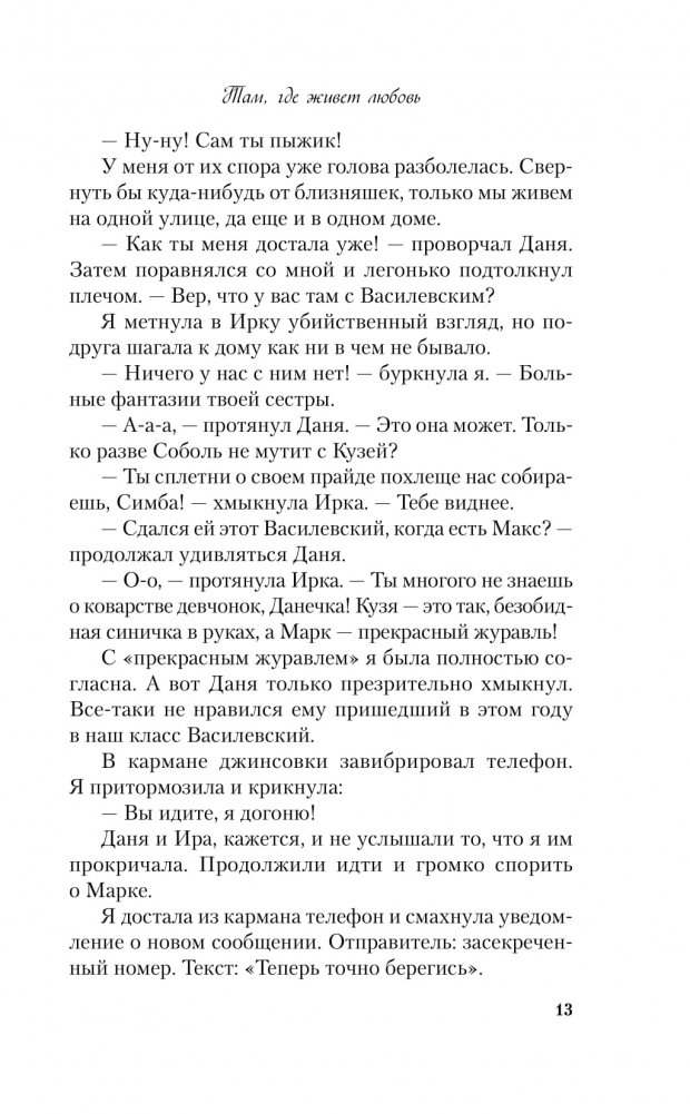 Вере Азаровой хватало неприятностей, но их стало больше, когда мечта всех девчонок Марк Василевский обратил на нее внимание. Кто-то начал присылать Вере анонимные сообщения с угрозами. Возможно, это самая красивая девчонка школы, которая также положила глаз на Марка?