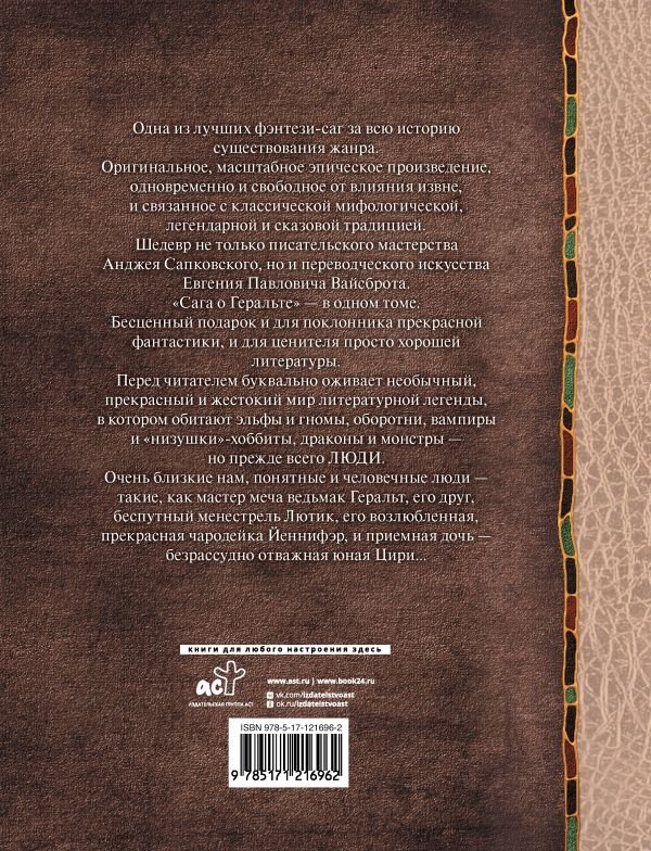«Сага о Геральте» – в одном томе. Бесценный подарок и для поклонника прекрасной фантастики, и для ценителя просто хорошей литературы.