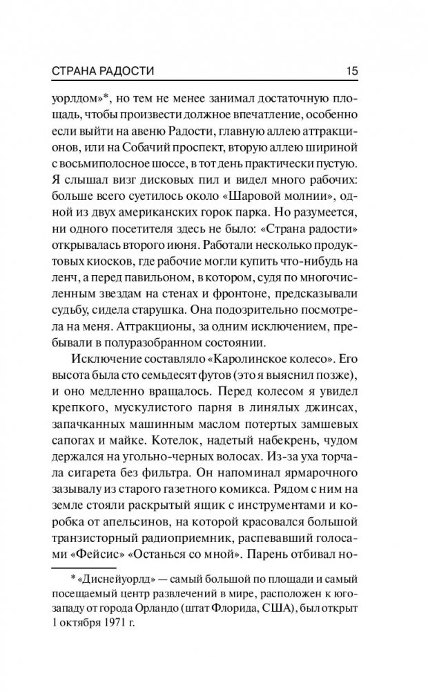 Пытаясь найти ответы на эти вопросы, Девин понимает: за ярким фасадом парка развлечений скрываются опасные тайны, а если разворошить прошлое обитателей «страны радости», то его собственная жизнь может непостижимым образом измениться раз и навсегда…