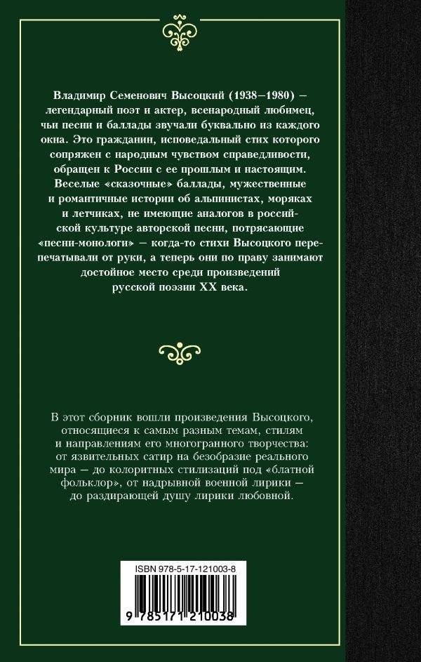 В этот сборник вошли произведения Высоцкого, относящиеся к самым разным темам, стилям и направлениям его многогранного творчества: от язвительных сатир на безобразие реального мира – до колоритных стилизаций под "блатной фольклор", от надрывной военной лирики – до раздирающей душу лирики любовной.