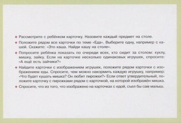 Всё, что знакомо и понятно малышу, всё, с чем он сталкивается в повседневной жизни, нашло отражение в этом комплекте карточек: стихи про маму и папу, про любимые игрушки, про животных и даже про кашу и зубную щетку.
