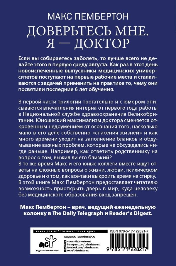 В первой части трилогии Макса Пембертона трогательно и с юмором описываются впечатления интерна от первого года работы в Национальной службе здравоохранения Великобритании. Юношеский максимализм доктора сменяется откровенным недоумением от осознания того, насколько мало в его деле собственно «спасения жизней» и как много времени уходит на заполнение бланков и обдумывание важных проблем, которые не обсуждались нигде раньше. Например, как ответить родственнику на вопрос о том, выжил ли его близкий?