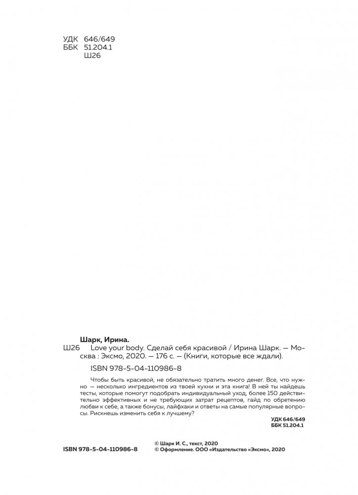 Чтобы быть красивой, не обязательно тратить много денег. Все, что нужно — несколько ингредиентов из твоей кухни и эта книга! В «Love your body. Сделай себя красивой» ты найдешь тесты, которые помогут подобрать индивидуальный уход, более 150 действительно эффективных и не требующих затрат рецептов, гайд по обретению любви к себе, а также бонусы, лайф-хаки и ответы на самые популярные вопросы.