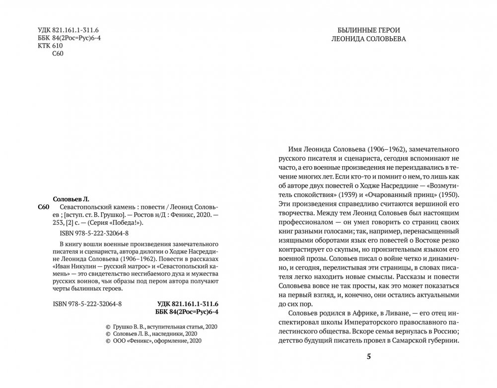 В книгу вошли военные произведения замечательного писателя и сценариста, автора дилогии о Ходже Насреддине Леонида Соловьева (1906-1962). Повести в рассказах "Иван Никулин - русский матрос" и "Севастопольский камень" - это свидетельство несгибаемого духа и мужества русских воинов, чьи образы под пером автора получают черты былинных героев.