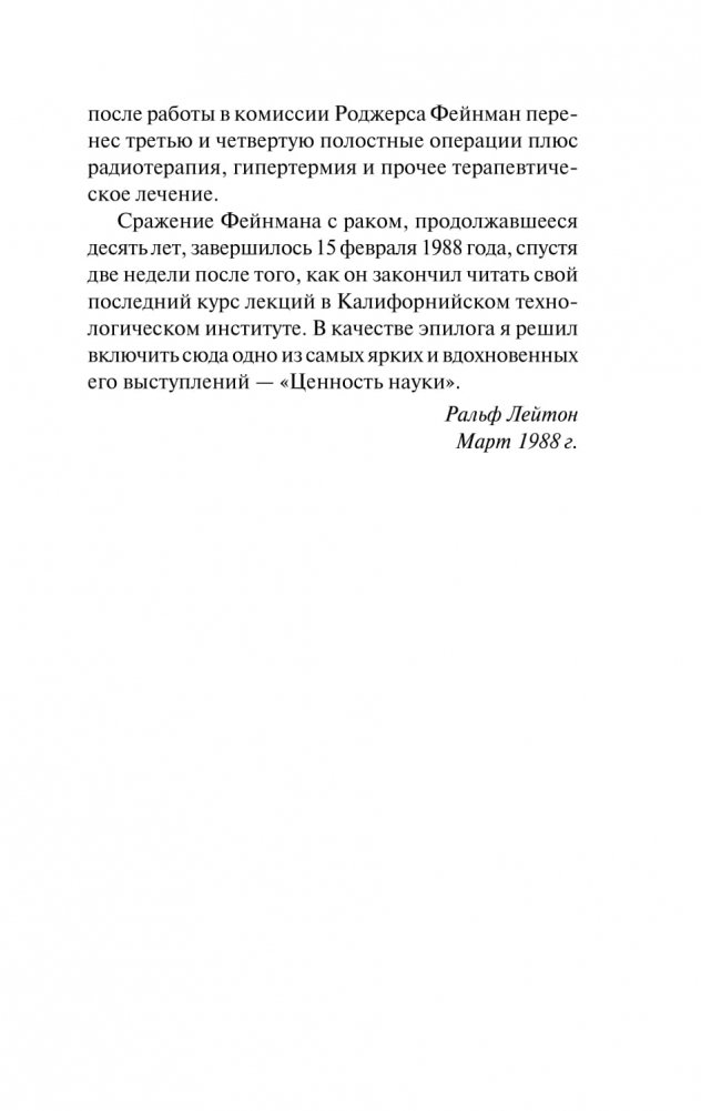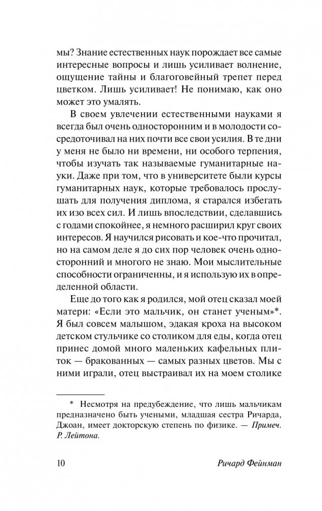 Знаменитый американский физик рассказывает, из каких составляющих складывались его отношение к работе и к жизни, необычайная работоспособность и исследовательский дух. Поразительно откровенны страницы, посвященные трагической истории его первой любви.