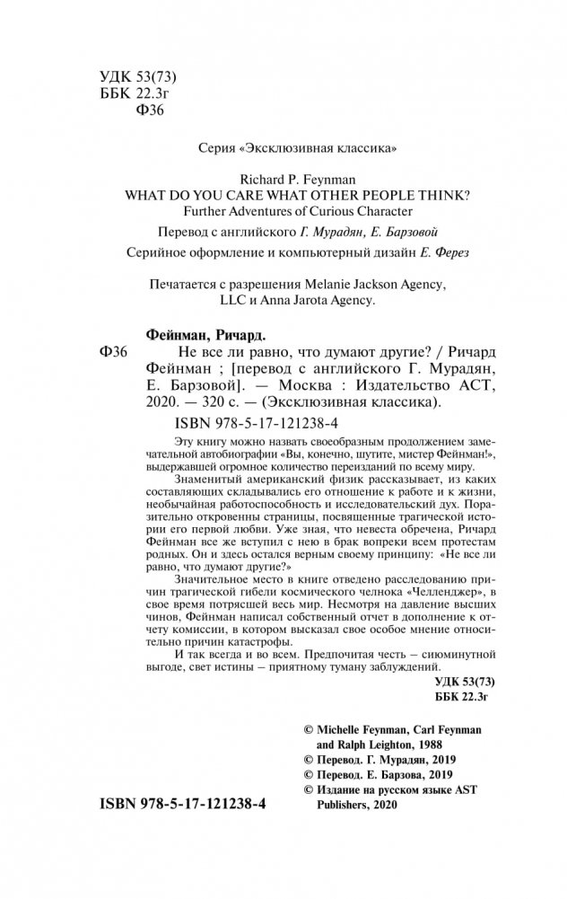 Эту книгу можно назвать своеобразным продолжением замечательной автобиографии «Вы, конечно, шутите, мистер Фейнман!», выдержавшей огромное количество переизданий по всему миру.