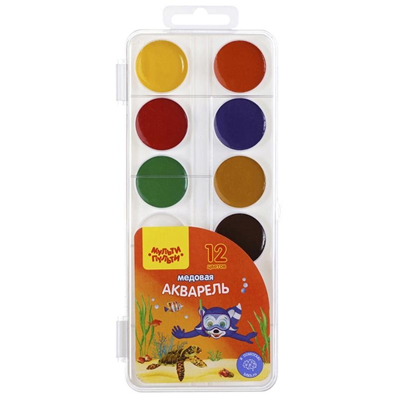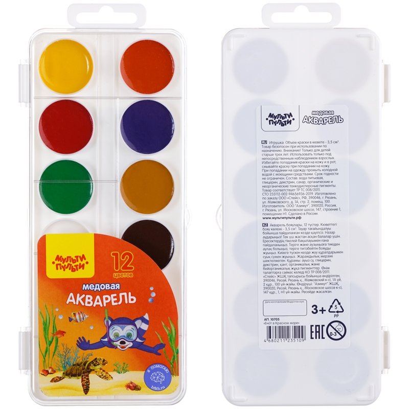 Акварель Мульти-Пульти "Енот в Красном море", медовая, 12 цветов, без кисти, пластик, европодвес. Арт. АП_10705