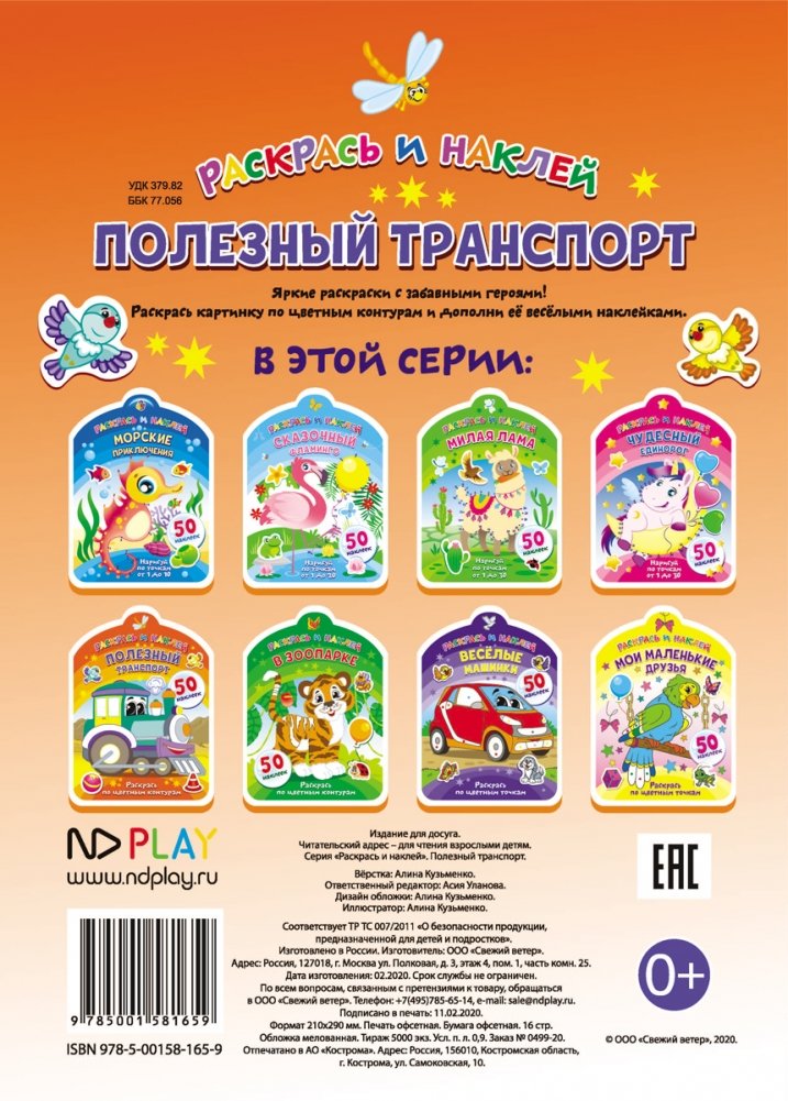 Яркие раскраски с забавными героями! Раскрась картинку по цветным контурам и дополни её веселыми наклейками.