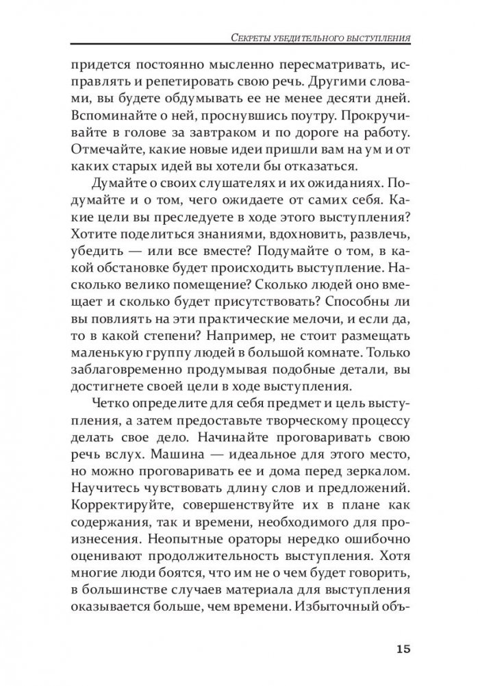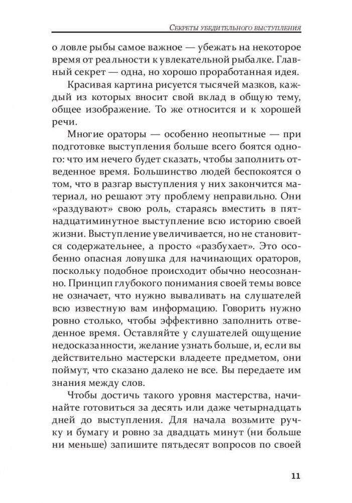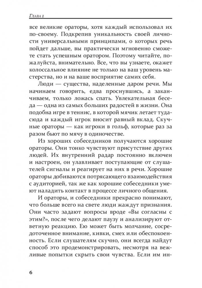В этой книге вы найдете все необходимое, чтобы стать виртуозом ораторского искусства. Она раскрывает приемы, которыми на протяжении истории человечества пользовались великие ораторы. Здесь вы узнаете, как должным образом подготовиться к презентации, сформировать собственный уникальный стиль, преодолеть боязнь сцены и за минуту завоевать любую аудиторию. Это полноценное практическое руководство, содержащее советы, приемы и примеры из жизни величайших мастеров общения.