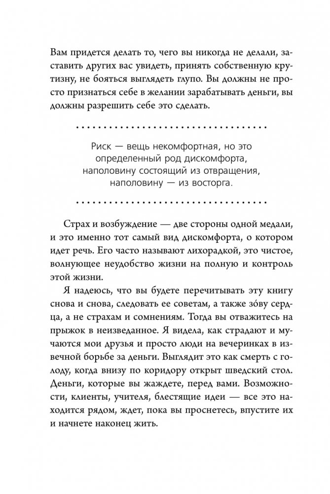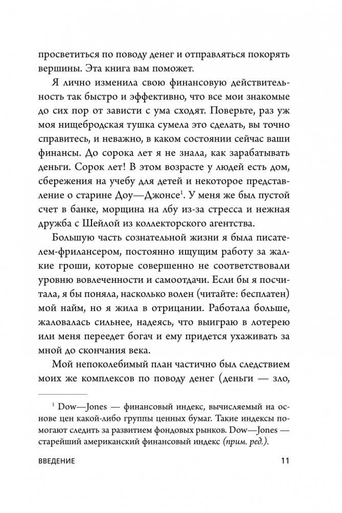 "Если даже такая нищебродская тушка, как я сумела поправить свое финансовое положение, сможет кто угодно!" - заявляет Джен Синсеро. И ей сложно не верить. До сорока с лишнем лет она жила в переделанном гараже, одевалась в секонд-хэнде и не могла себе позволить вылечить зубы. Сейчас Джен путешествует по всему миру, останавливаясь только в пятизвездочных отелях. Ее книга – это квинтэссенция методик и стратегий по перенастройке финансового мышления. Она не только снимает психологические блоки на пути к достойному доходу, но и отвешивает энергетический пинок, который придает сил для достижения самых смелых целей.