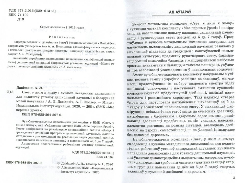Свет, у якiм я жыву. Вучэбна-метадычны дапаможнiк для педагогаў устаноў дашкольнай адукацыі
